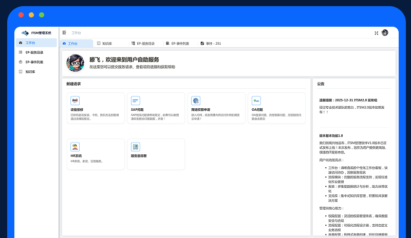 用于员工,客户联系人自助通过服务目录提交问题,反馈意见及满意度评价